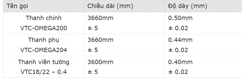 Hệ khung trần chìm VĨNH TƯỜNG OMEGA bao gồm các thành phần: